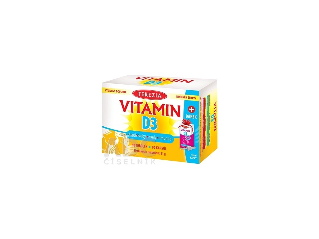 TEREZIA VITAMÍN D3 1000 IU cps 1x90 ks + darček kvapky Vitamín D3 BABY 400 IU 1x10 ml, 1x1 set