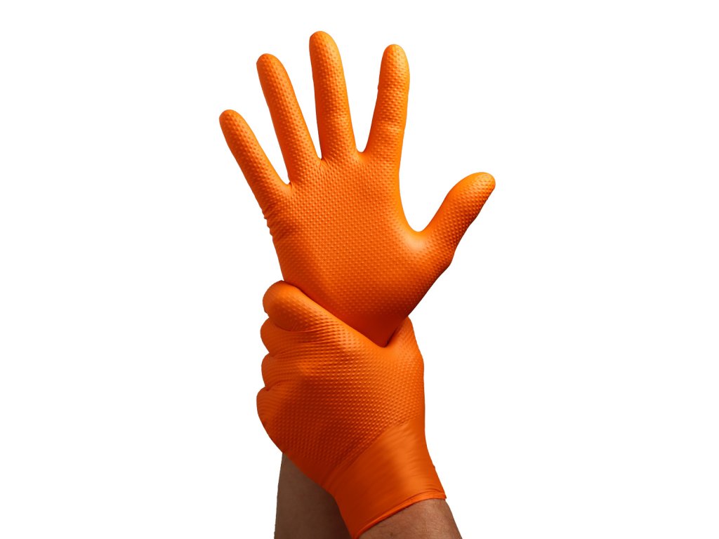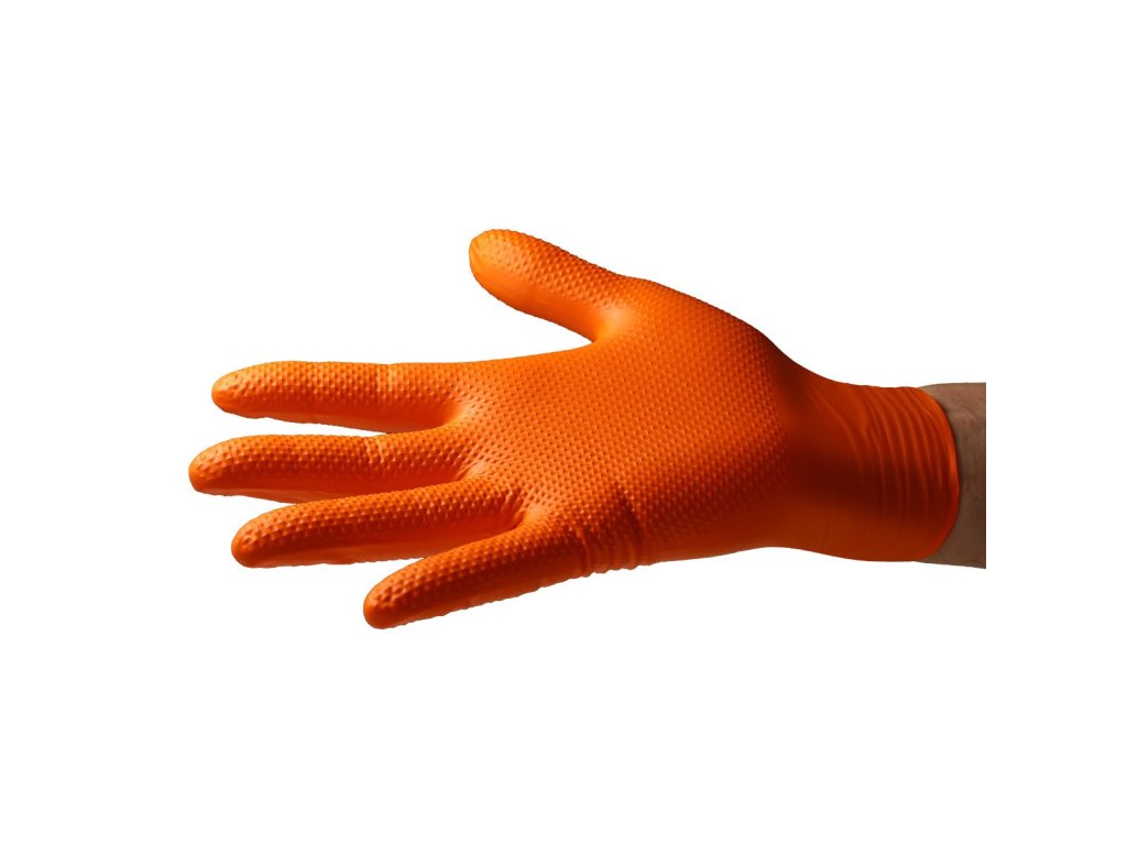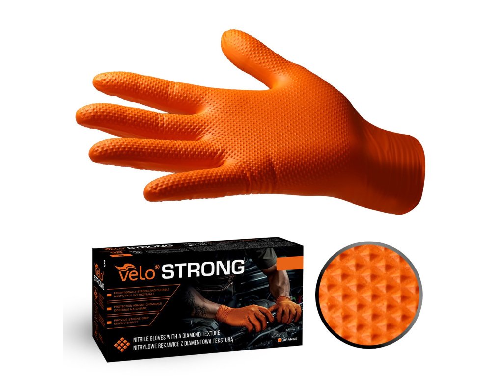 VELO STRONG GRIP Pevné nitrilové pracovné rukavice s pevným úchopom, veľ.M, oranžové, 50ks