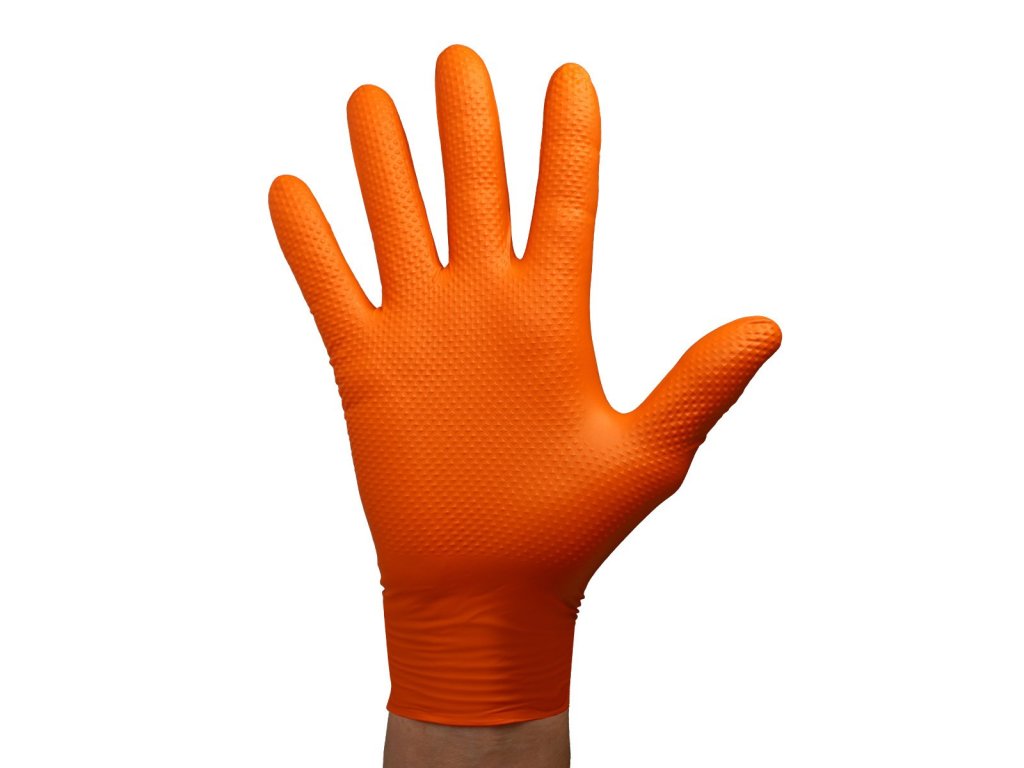 VELO STRONG GRIP Pevné nitrilové pracovné rukavice s pevným úchopom, veľ.XL, oranžové,50ks