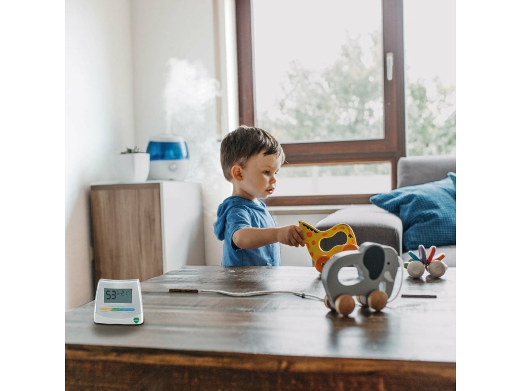 Vlhkomer a teplomer 2 v 1 sa dá ľahko presúvať medzi miestnosťami alebo rôznymi miestami, takže je jednoduché zistiť kde a na ktorom mieste je potrebný zvlhčovač vzduchu na udržanie správnej úrovne vlhkosti.
