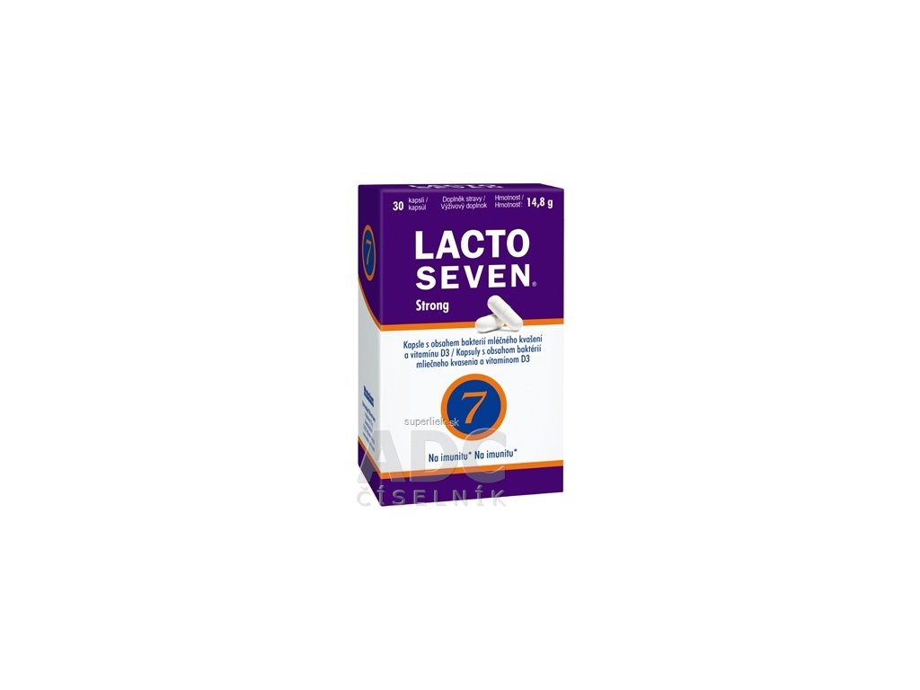 Lacto Seven Strong -kapsula obsahuje celkom 10 miliárd živých baktérií mliečneho kvasenia zo siedmich rôznych kmeňov baktérií mliečneho kvasenia (vrátane kmeňov Lactobacillus a Bifidobacterium). Kapsula tiež obsahuje vitamín D3, ktorý prispieva k normálnej funkcii imunitného systému.