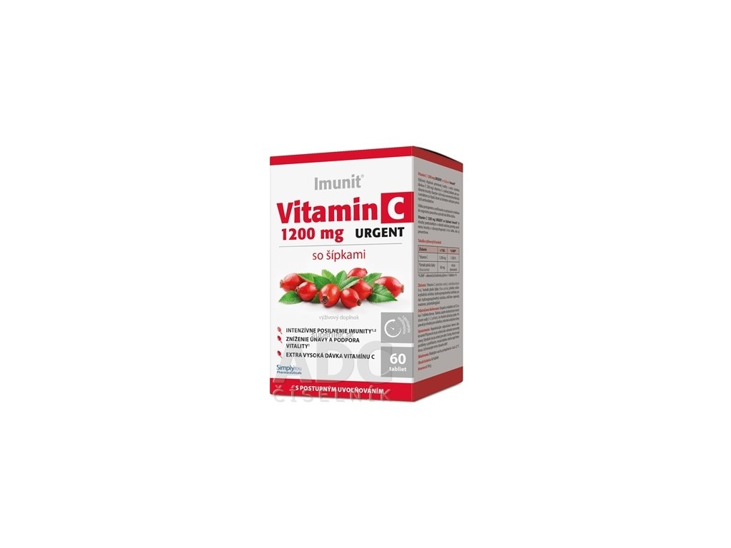 Imunit Vitamín C 1200 mg URGENT so šípkami je prémiový výživový doplnok renomovaného a tradičného produktového radu Imunit, ktorý sa vyznačuje vysokou kvalitou surovín. Obsahuje extra vysokú dávku (1 200 mg) vitamínu C v jednej tablete pre posilnenie imunity. Navyše v účinnej a overenej kombinácii s extraktom zo šípok, ktoré sú bohatým zdrojom prírodných antioxidantov.