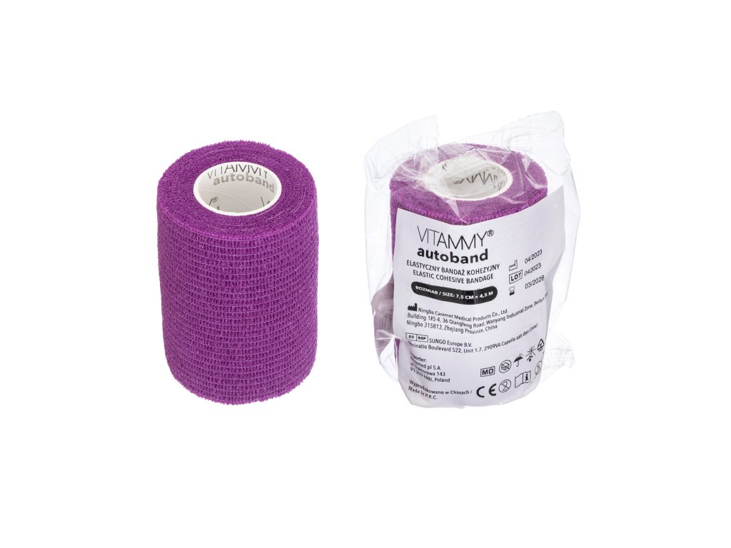 Elastický kohézny obväz Vitammy Autoband je praktické a pohodlné riešenie na upevnenie obväzov, liečbu výronov, zlomenín a na zníženie pohyblivosti kĺbov po úraze. Je dostupná v mnohých farbách a veľkostiach, vďaka čomu sa hodí pre rôzne potreby.