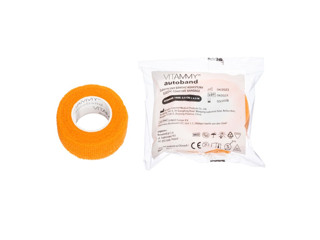 Elastický kohézny obväz Vitammy Autoband je praktické a pohodlné riešenie na upevnenie obväzov, liečbu výronov, zlomenín a na zníženie pohyblivosti kĺbov po úraze. Je dostupná v mnohých farbách a veľkostiach, vďaka čomu sa hodí pre rôzne potreby.