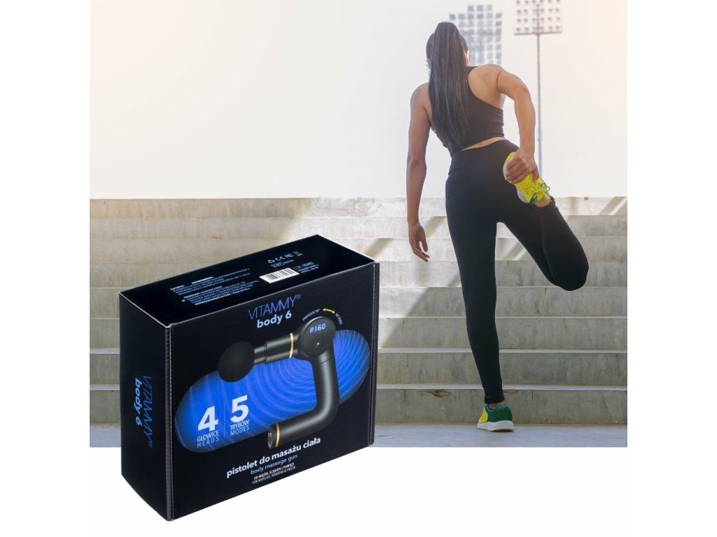VITAMMY BODY 6, Ľahká a bezpečná samomasážna pištoľ na telo, čierna