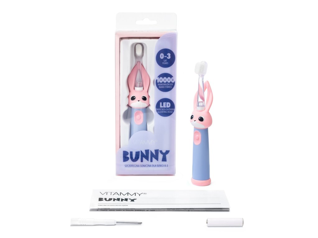 VITAMMY Bunny Sonická zubná kefka pre deti s LED svetlom a nanovláknami, 0-3 roky, ružová