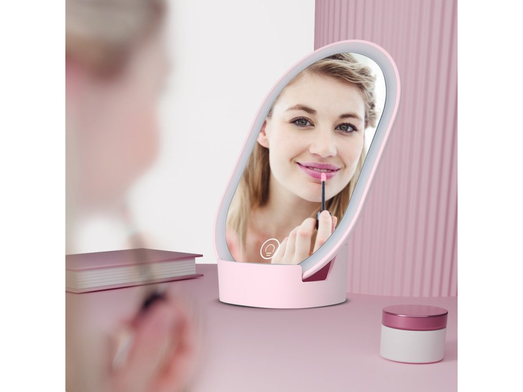 Minimalistický vzhľad zrkadla dokonale zapadne do moderných interiérov. Matný ružový obal mu dodáva neobyčajný šarm a eleganciu, vďaka čomu je zrkadlo nielen každodennou kozmetickou pomôckou, ale aj dekoratívnym prvkom na poličkách v kúpeľni alebo toaletných stolíkoch v spálni.