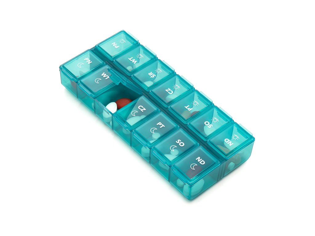 Každý zo siedmich dní je rozdelený do dvoch samostatných priehradiek – jednej na rannú dávku a jednej na večernú dávku. Je to mimoriadne pohodlné riešenie pre tých, ktorí užívajú lieky dvakrát denne a chcú mať všetko prehľadne a vždy poruke. S týmto dávkovačom je plánovanie liečby jednoduché a bezpečné