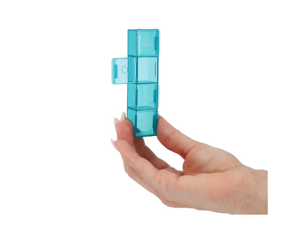 Každé puzdro sa dá ľahko vybrať, čo z neho robí ideálne riešenie, keď si so sebou potrebujete vziať iba jednodňovú dávku liekov – do práce, do školy alebo na výlet. Tento cestovný organizér vám umožní mať lieky vždy poruke, bez potreby nosiť celú krabičku.