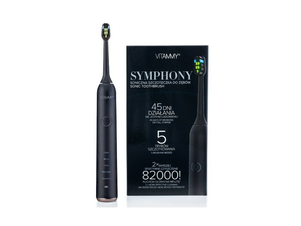 VITAMMY SYMPHONY je ideálnou voľbou pre tých, ktorí hľadajú výkonnú, tichú a pohodlnú sonickú zubnú kefku s dlhou výdržou batérie a elegantným dizajnom. Užite si pocit dokonale čistých zubov každý deň!