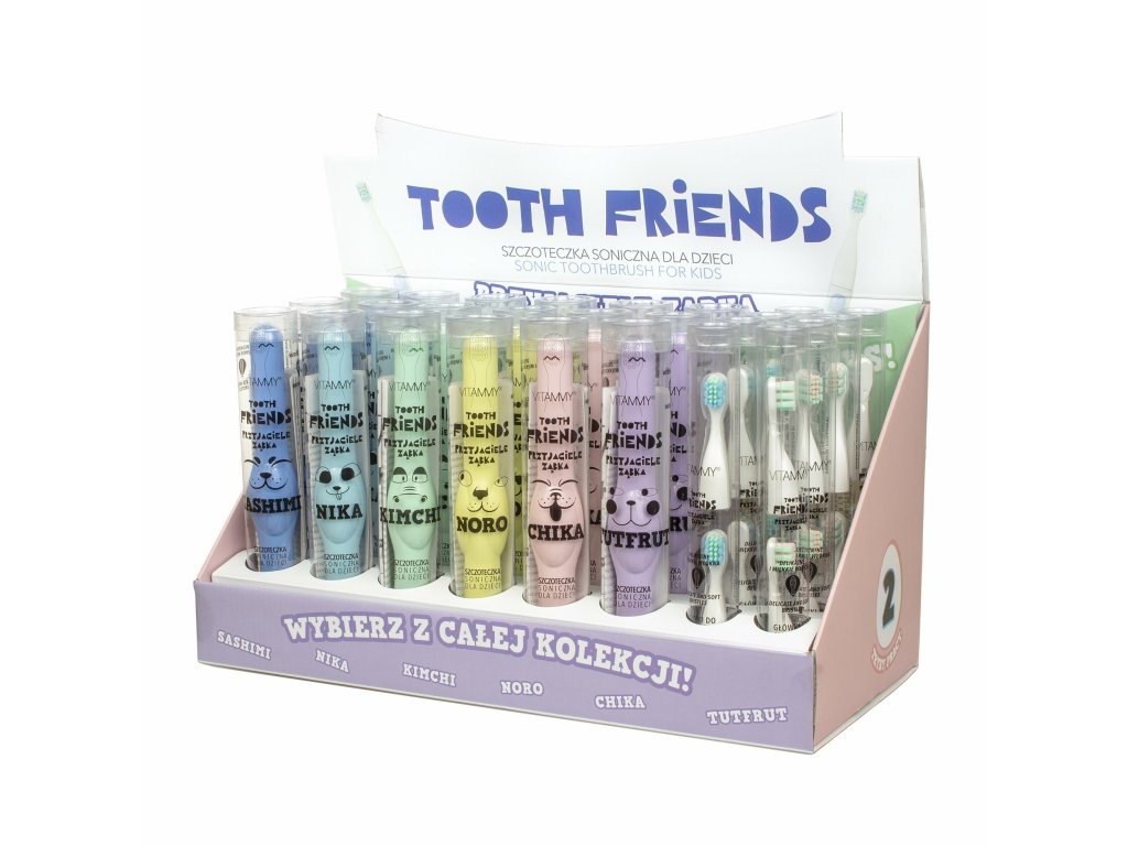 VITAMMY TOOTH FRIENDS DISPLAY detská sonická zubná kefka 18 ks + náhradné hlavy 8 ks