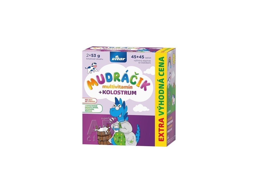 VITAR MUDRÁČIK multivitamín + KOLOSTRUM tbl, zmes 3 príchutí 2x45 ks (90 ks)