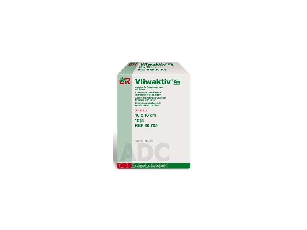 Vliwaktiv® Ag nasávacia kompresa s obsahom aktívneho uhlia a striebra je antimikrobiálna kompresa s veľkou absorpčnou schopnosťou, nelepiaca sa na ranu, ktorá obsahuje striebrom impregnovanú tkaninu s aktívnym uhlím.