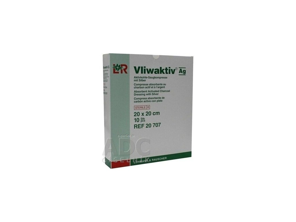 VLIWAKTIV AG 20x20 cm nasávací kompres s obsahom aktívneho uhlia a striebra 1x10 ks