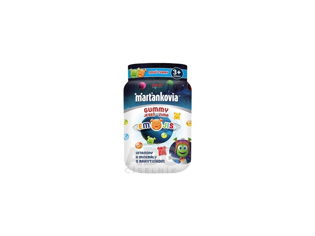 WALMARK Marťankovia GUMMY JESEŇ - ZIMA EMOJIS želatínové tablety, príchuť marakuja, malina, jahoda, pomaranč 1x50 ks