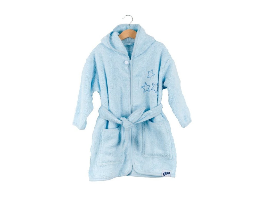 XKKO BIO Bavlnený župan Organic - Grey Stars, 6-12m, modrý