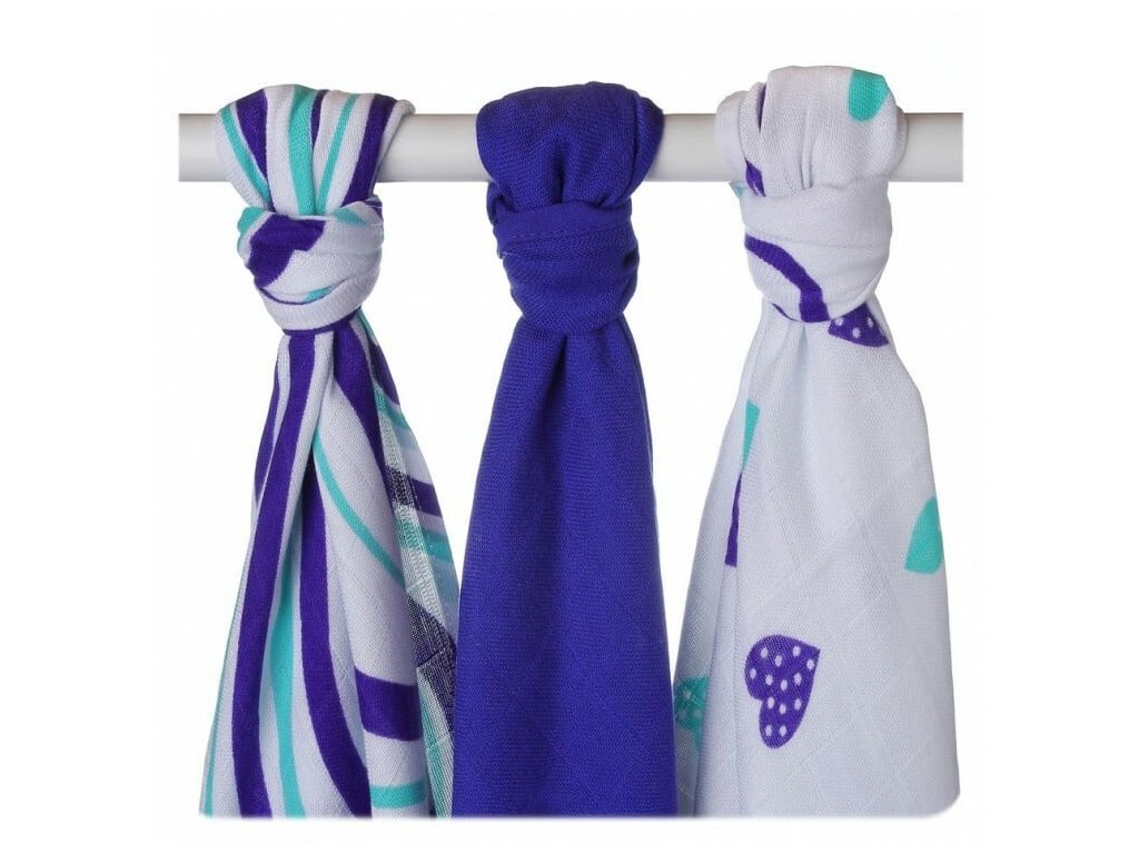 XKKO BMB Bambusová plienka Hearts&Waves 70x70 - Ocean Blue MIX (3ks)
