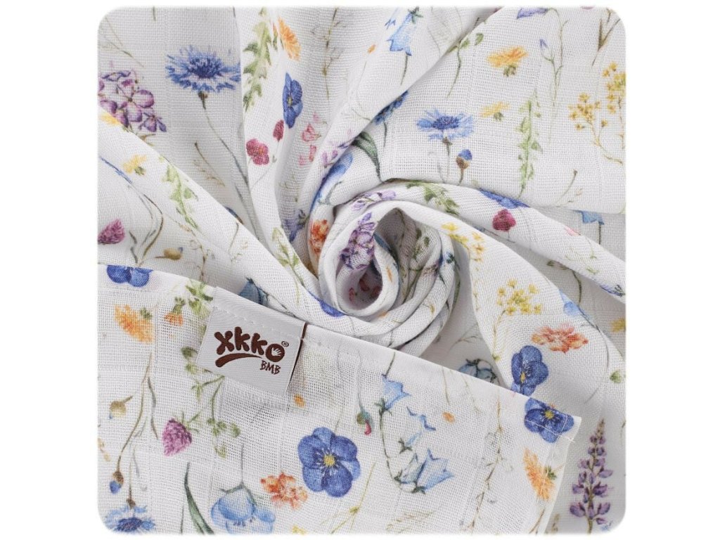 XKKO BMB Digi - Blue Wild Flowers, Bambusová zavinovačka - osuška, 120x120