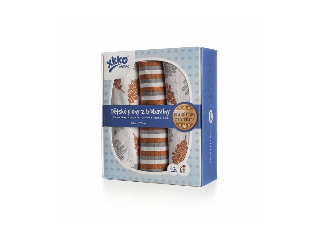 XKKO Organic Bavlnené plienky Staré časy - Dub, 70x70, (3ks)