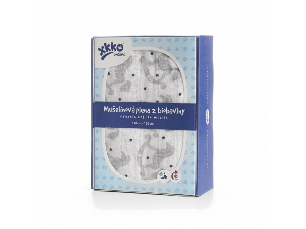XKKO Organic Biobavlnená plienka 120x120, Rocking Horses Silver