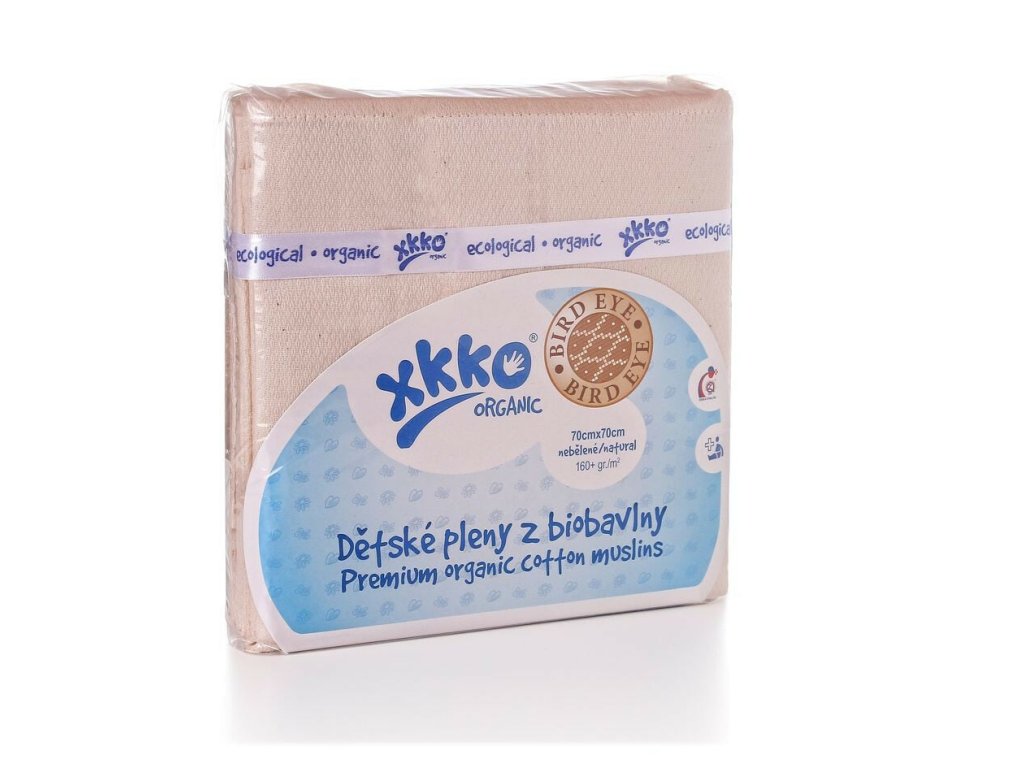 XKKO Organic Bird Eye - Natural, Plienky z biobavlny, 70x70