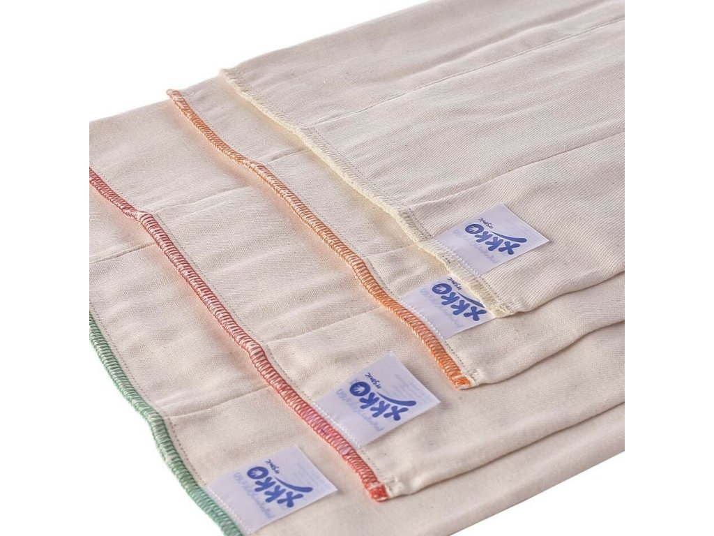 Plienky sú vyrobené zo 100% bavlneného kepru. Tento materiál po viacerých praniach získava ešte väčšiu savosť. Plienky získavajú optimálnu savosť po 4-8 praniach.